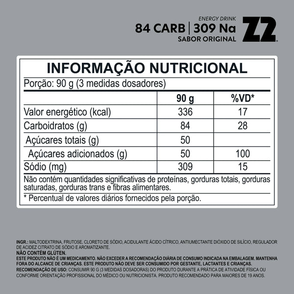 Em sua composição, são 84g de carboidratos no blend de 1 : 0,8 (maltodextrina e frutose) e 309mg de sódio.